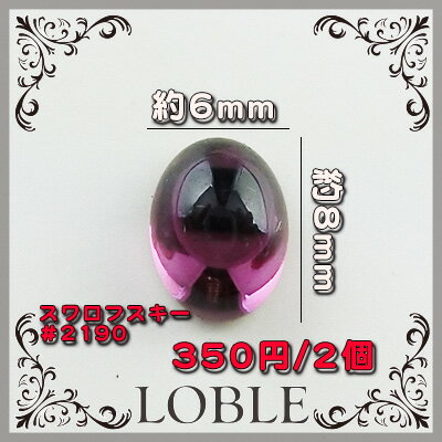 【ラスト2袋】スワロフスキー #2190 アメジスト 8×6mm 材質:ガラス 色:アメジスト スワロフスキーの#2190の半丸楕円形です。
