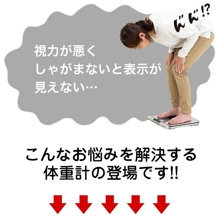 ●サイズ/体重体組成計:約幅28×奥行28×高さ2cm、表示器:約幅18.5×奥行2.6×高さ13.7cm●重さ/体重体組成計:約1.46kg(電池含む)、表示器:約300g(電池含む)●耐荷重量/135kg●素材/体重体組成計:強化ガラス、ステンレス、ABS樹脂、表示器:液晶パネル、ABS樹脂●仕様/電源:体重体組成計/単4形乾電池(1.5V)×3本、表示器/単4形乾電池(1.5V)×3本、測定項目:体重・体脂肪・BMI(肥満指数)、体重表示:単位/3〜100kgまで50g単位・100超〜135kgまで100g単位、体脂肪表示:単位/5.0〜80.0%まで0.1%単位、設定項目:登録人数/5名、性別/男性・女性、身長/100〜220cm、年齢/6〜100歳●備考/1年間保証書付き、モニター電池付属●製造国/中国製【代引きについて】こちらの商品は、代引きでの出荷は受け付けておりません。